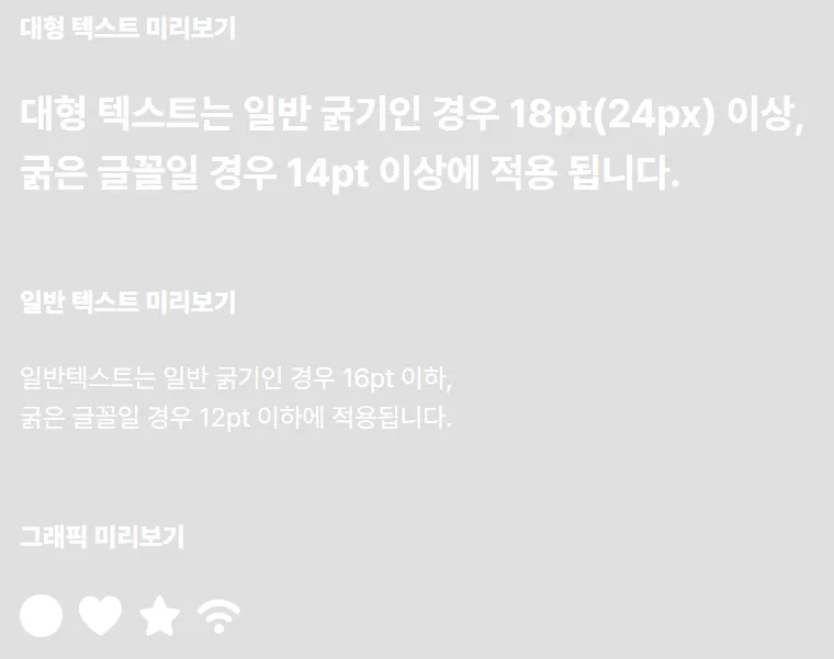 - 대체 텍스트: 이미지, 영상과 같이 텍스트가 아닌 콘텐츠에 대한 대체 텍스트를 제공
