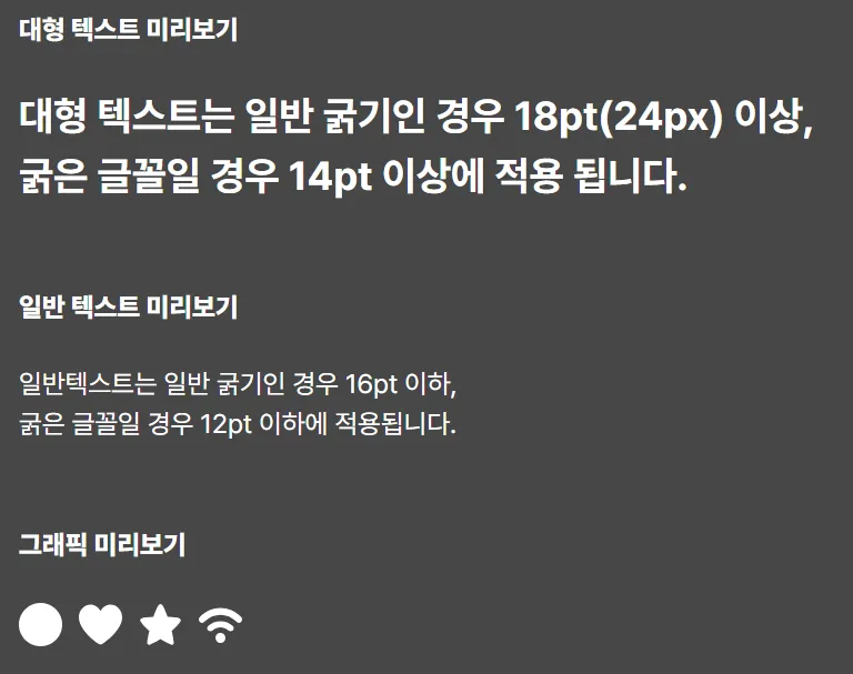- 대체 텍스트, 명암비, 키보드 네비게이션 등